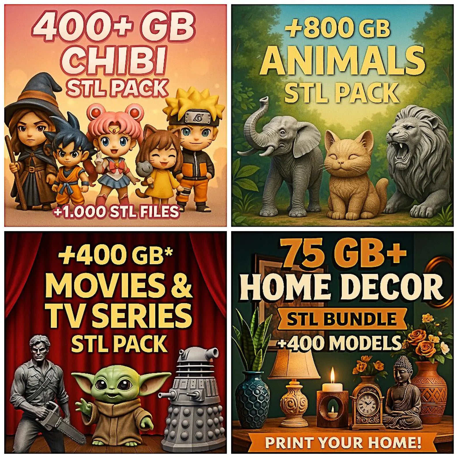 Stop wasting hours searching for files — get everything you’ll ever need in one giant digital library! The Ultimate 3D Print STL Mega Bundle (90 TB) includes 100,000+ professionally organized STL models, ready to print instantly.
